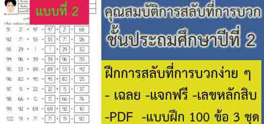ontous.info แจกฟรี แบบฝึกหัดวิชาภาษาไทย เรื่อง สระไทย การบอกชื่อสระจากรูปสระให้ถูกต้องจำนวนกว่า 100 ชุด รูปแบบไฟล์ PDF พร้อมเฉลยท้ายแบบฝึก ดาวน์โหลดได้ฟรี download free