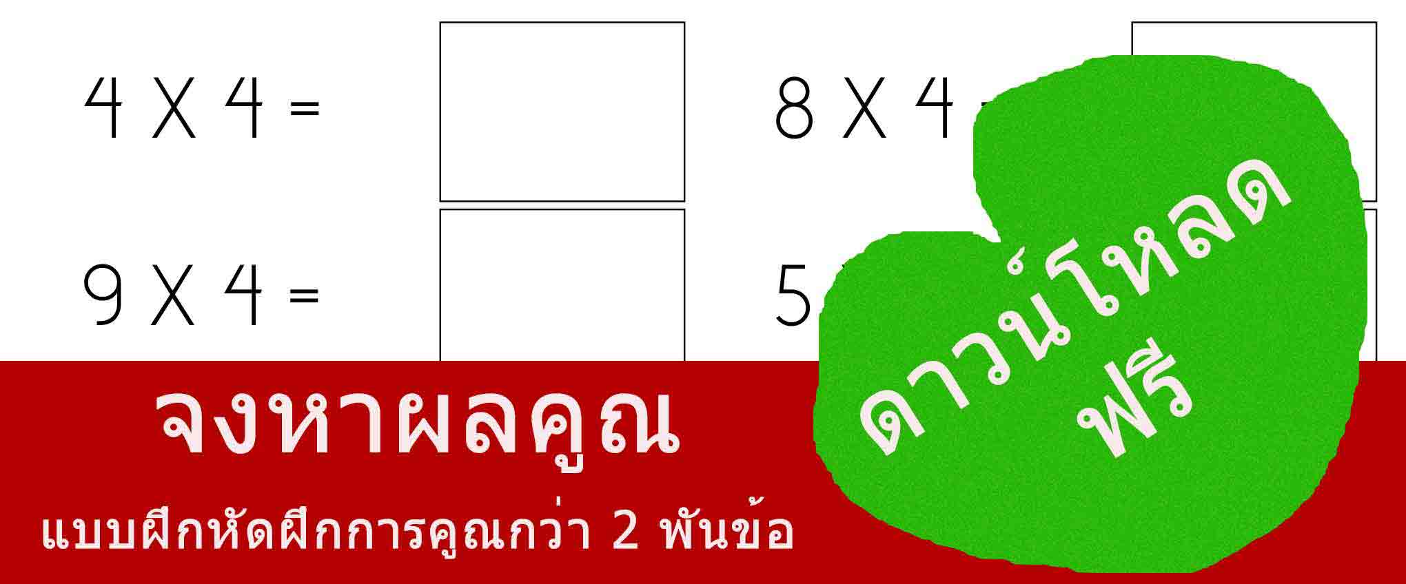 แบบฝึกหัดชุดนี้เป็นแบบฝึกหัดการคูณตามแม่สูตรคูณแม่ 0-9 เป็นแม่สูตรคูณพื้นฐานที่จะช่วยให้เราสามารถคูณเลขหลายหักได้ดีขึ้น ดังนั้นการฝึกเลขหลักเดียวตามแม่สูตรคูณนี้ก็จะช่วยให้เราพัฒนาการคูณของตัวเองให้ดีขึ้นไปได้ การคูณในแบบฝึกหัดนี้ได้เตรียมไว้ให้กว่า 2000 ข้อ เพื่อให้ผู้ฝึกได้ฝึกอย่างหลากหลาย รวมอยู่ในไฟล์ 10 ไฟล์ แต่ละไฟล์ประกอบด้วยคำถาม 200 ข้อ และมีเฉลยท้ายไฟล์ การฝึกที่ดีต้องไม่ดูเฉลยก่อนนะครับ มีเฉลยเอาไว้ตรวจสอบความถูกต้องหลักจากได้ลงมือทำแล้วจะดีที่สุด ตัวอย่างแบบฝึกแบบที่ 1 ดาวน์โหลดได้ด้านล่าง ตัวอย่างแบบฝึกแบบที่ 2 ดาวน์โหลดได้ที่ไฟล์ด้านล่าง ขอให้มีความสุขกับการฝึกฝนการคูณนะครับ